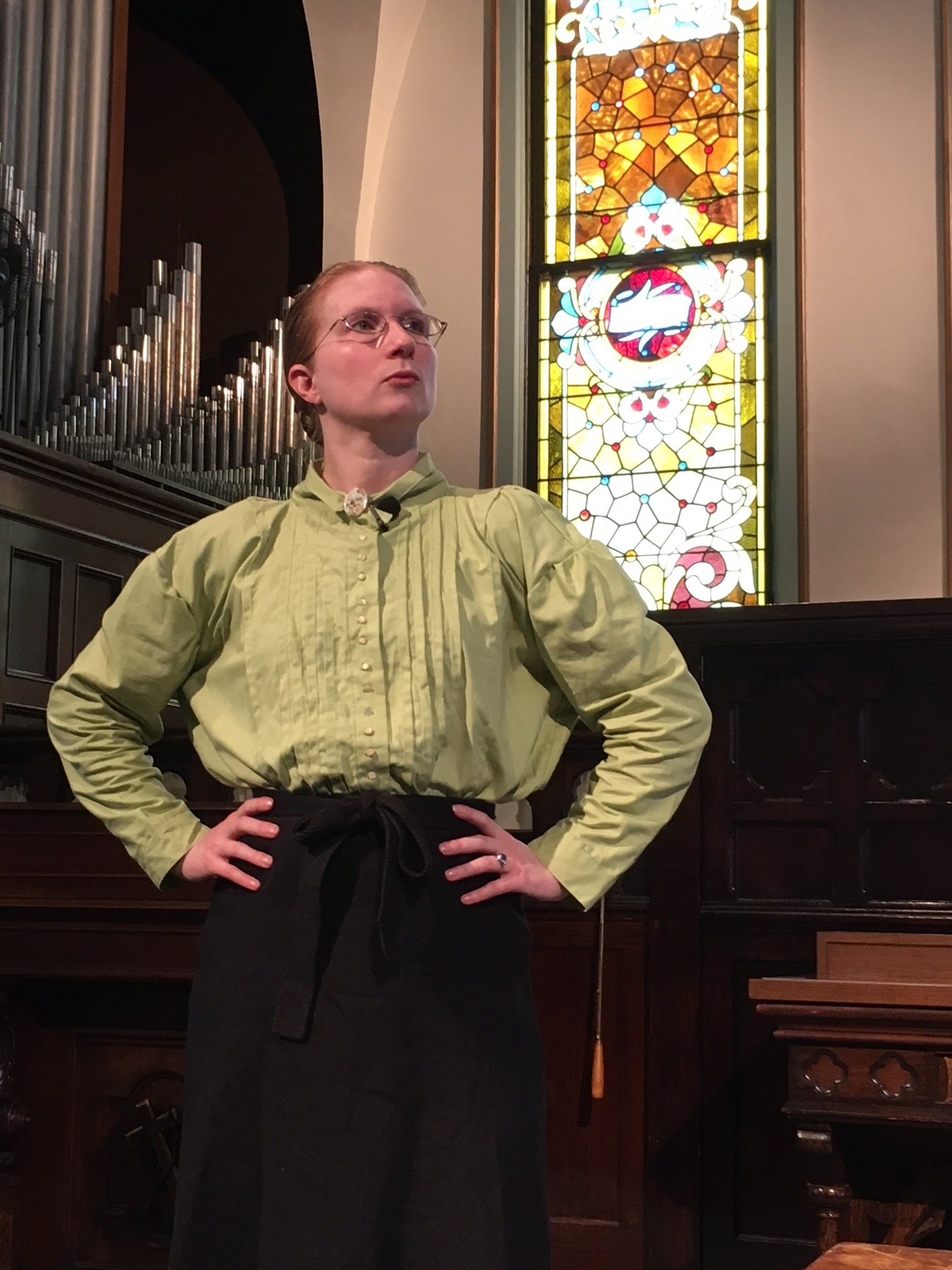By the Light of Tiffany premiered in September, 2018 thanks to the First Fridays Concert & Artist Series in Middletown, OH, made possible by Ohio arts council groups including the Middletown Community Foundation. Leanna has since toured Clara into the historic Wade Chapel in Cleveland, pictured above, where Clara and the Women's Glass Cutting department were responsible for cutting tens of thousands of pieces of mosaic glass. Leanna has also presented Clara at the historic Reid Center in Indiana and the grand Willard Chapel in Auburn, entirely designed by Tiffany Studios: